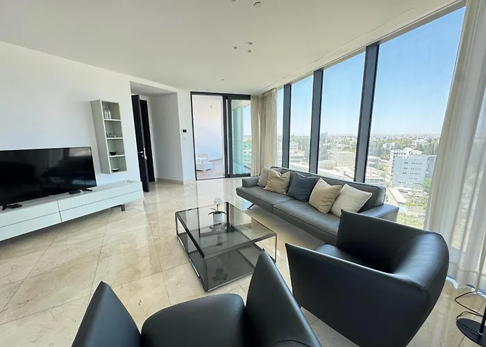 Skyhigh Park View Residence Nicosia med 2 sovrum, som ligger cirka 5 minuter till fots från Shacolas Tower Museum and Observatory, erbjuder bastu och inomhuspool. Wi-Fi och en parkering finns för gästernas affärs- eller fritidsbehov.